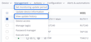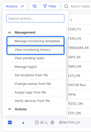 Previously, to enable or disable additional monitoring parameters users had to go to "Set monitoring update period" in the top menu, this functionality is now known as "Manage monitoring templates". Similarly, "View Update history" has been renamed to "View Monitoring history" and features a new interface.