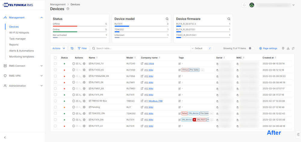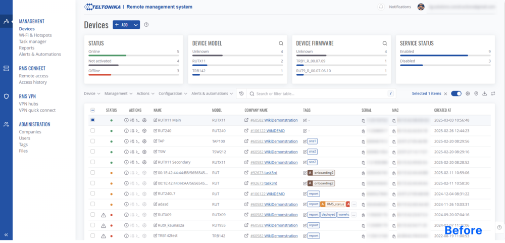 Main Page > IoT Platforms > RMS > RMS UI changesIn the upcoming major update, RMS website will receive the following UI changes and feature additions.
