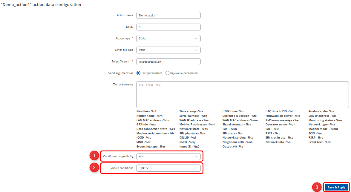 - Text message - Enter your preferred text (In this configuration we will send routers name and the timestamp)