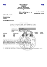 #'''For Radio part of the device''' | #'''For Radio part of the device''' – Official Grant of Equipment Authorization Issued Under the Authority of the Federal Communications Commission by testing lab. | ||