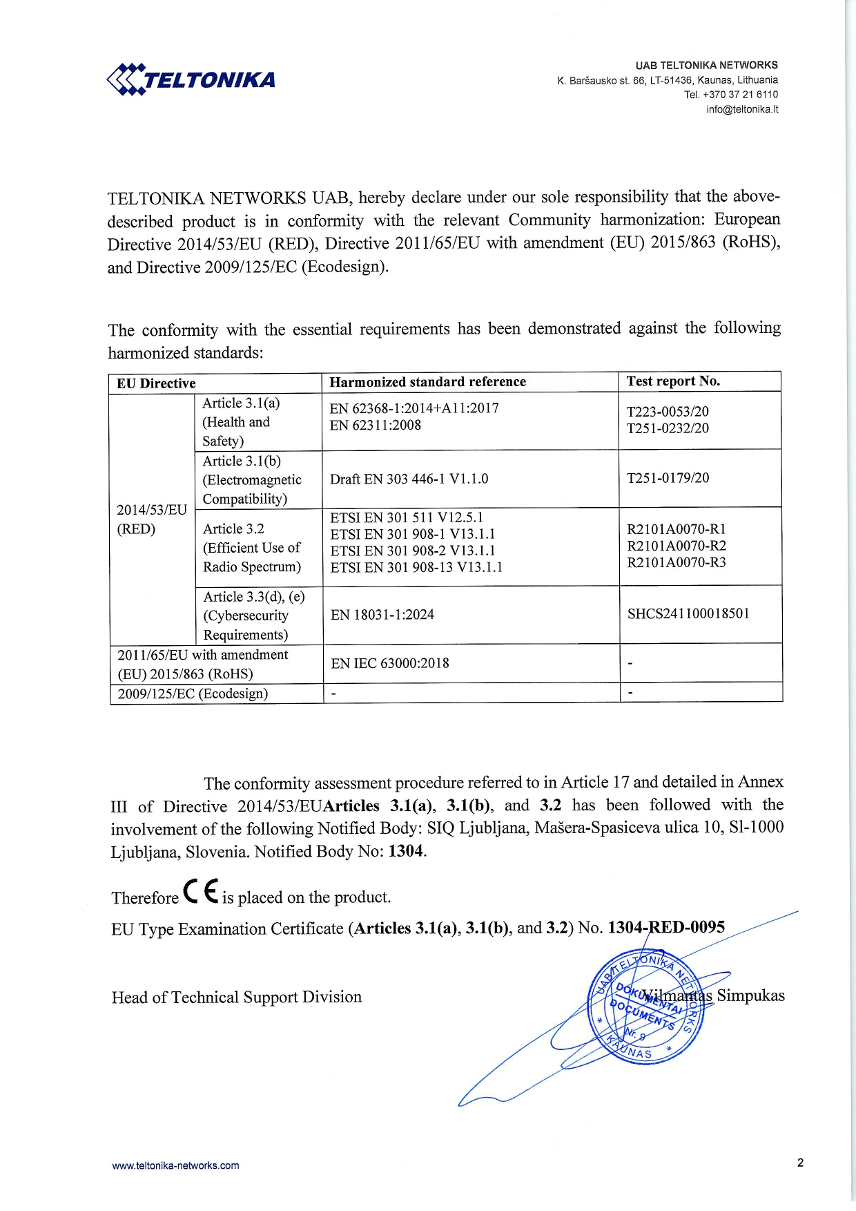 {{Networking device certification ce red|ec_number=1304-RED-0095|link_1=https://ec.europa.eu/growth/single-market/european-standards/harmonised-standards/red_en| | {{Networking device certification ce red | ||