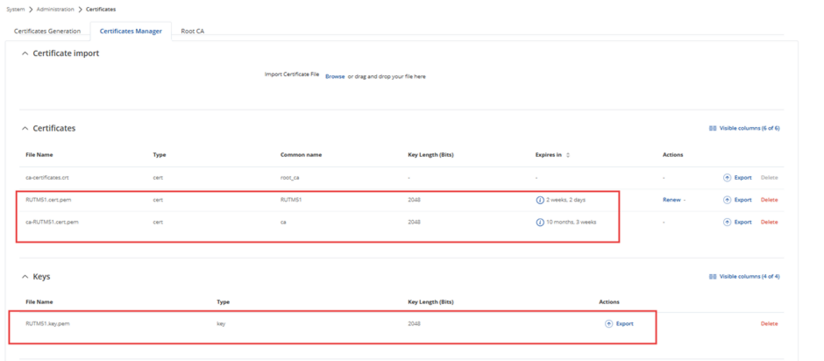 After the certification enrollment process is finished, the certificates can be seen from the System > Administration > Certificates section.