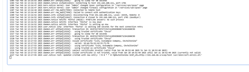 After the access is granted, certificate enrollment and connection establishment can be monitored in real time through the device’s CLI. Logs and status updates provide insights into each step, ensuring proper functionality and troubleshooting if needed.