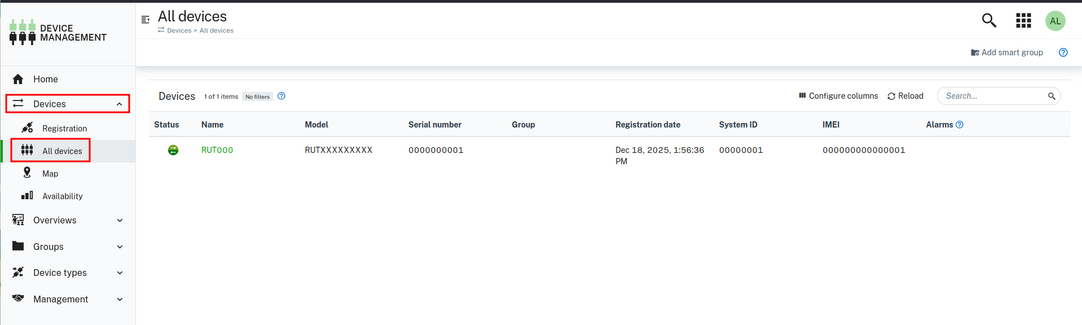 - Now added device can be seen in the 'Devices' tab in left-hand menu, go to 'All devices'.