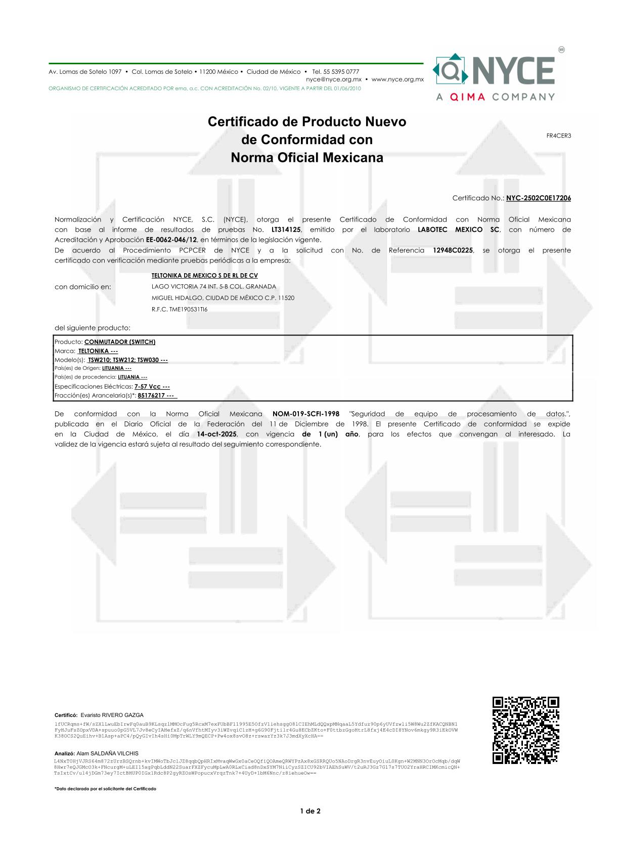 - 14:47, 23 October 2025 Kornelija.kumpyte talk contribs uploaded File:6.- CERT TSW210-TSW304 NOM-019 TSW212 wiki.pdf