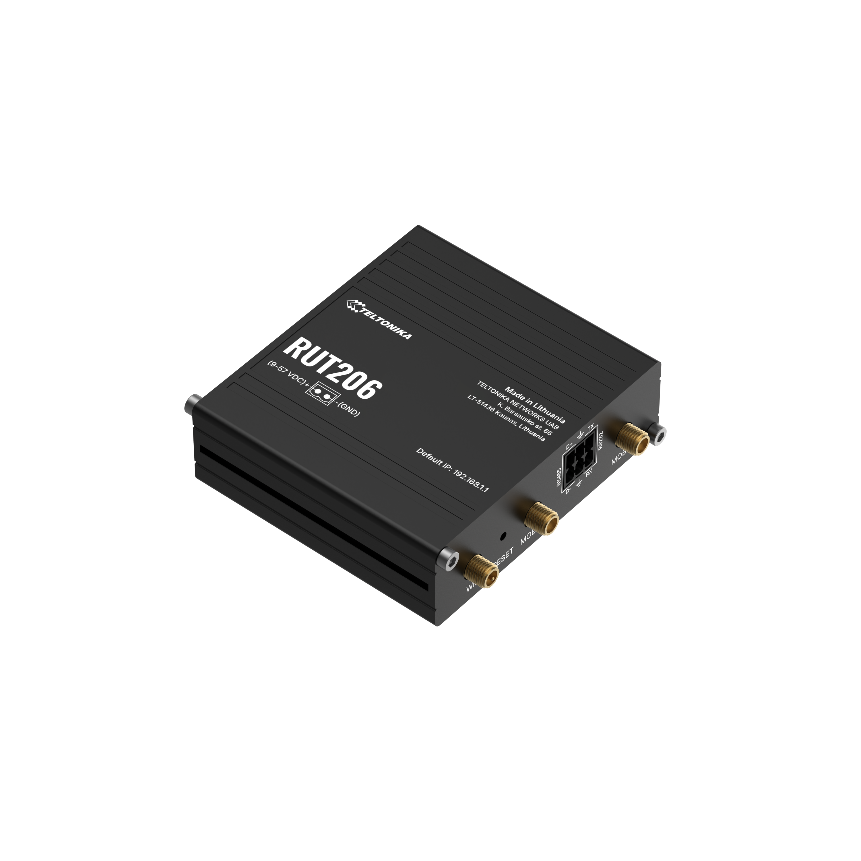 RUT206 is a compact industrial 2G/3G/4G (LTE) router equipped with 2x Ethernet ports, WiFi, an I/O connector block, RS232/RS485 and RutOS software for advanced networking solutions.