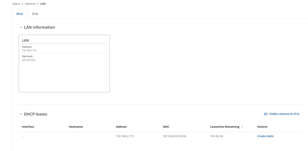 Navigate to the Open DHCP server's WebUI -> Status -> Network -> LAN. If the configuration is successful, the lease for the 192.168.2.0/24 network should be displayed in the WebUI DHCP lease list.