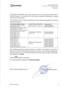 EU Type Examination Certificate - Articles 3(3)(d), (e) No.: RED-3465