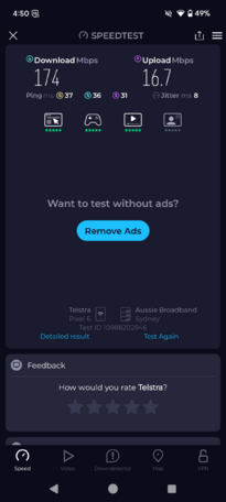 The below screenshots provide speed test when the device was connected to starlink.