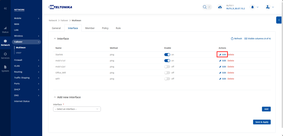 Note: Depending on the reliability of your Starlink connection, you have the flexibility to adjust your interval setting for your WAN connection to a value between 3 and 10. We recommend conducting tests to determine the optimal interval that offers the highest stability for your specific location.