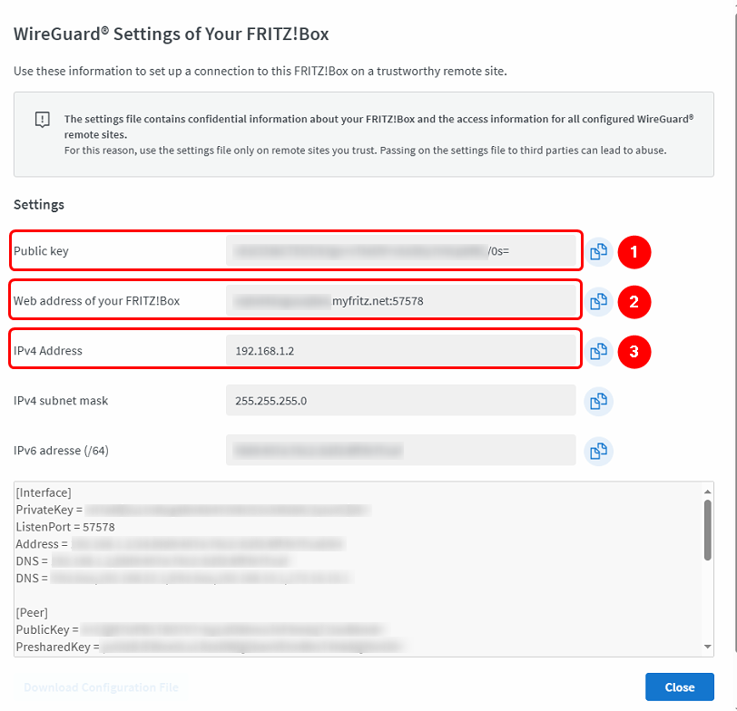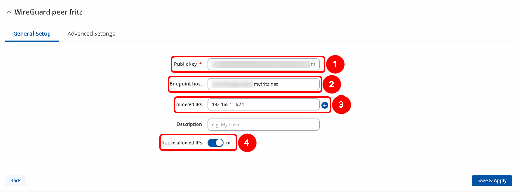 - Allowed IP's - In this example. we're putting 192.168.1.0/24 which is the FritzBox LAN subnet