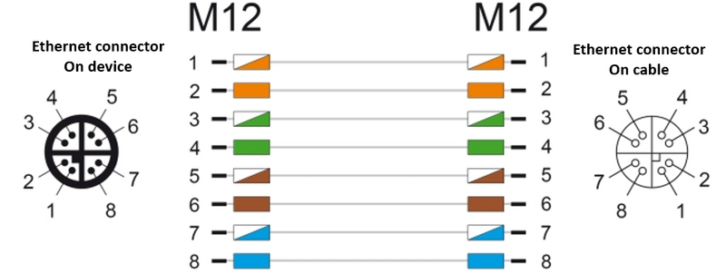 M12 to M12 Ethernet Cable Wiring – 8-Pin Pinout