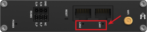 The Ethernet port LEDs are located on the device's front panel, under each respective Ethernet port.