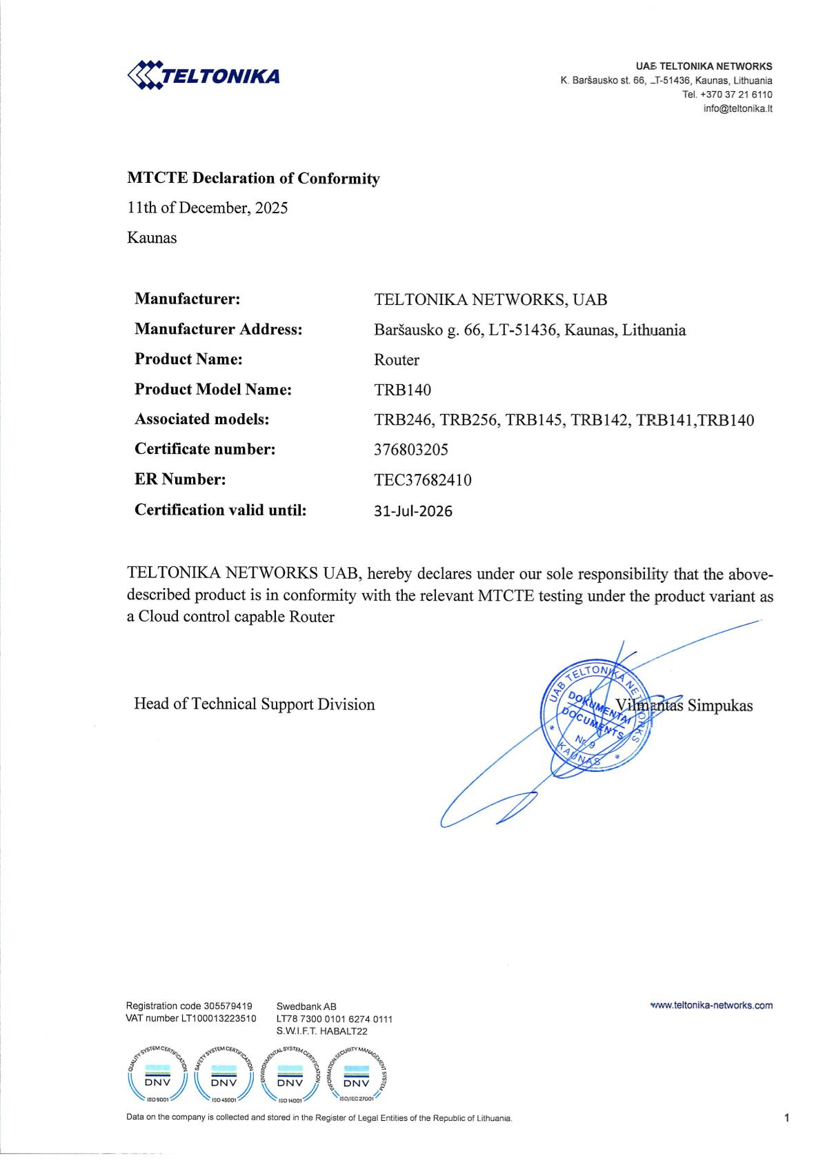 MTCTE Declaration of Conformity