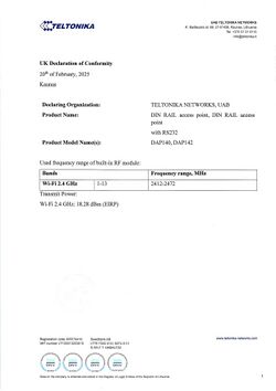 | EN 55032:2015 + A11:2020 + A1:2020 EN 55035:2017 + A11:2020 EN 301 489-1 V2.2.3 EN 301 489-17 V3.2.4 |