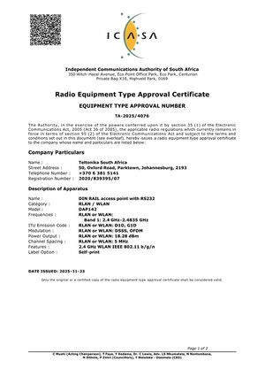 Radio frequency transmitter and receiver products that make use of the radio spectrum or connect to the public network and are intended to be marketed in South Africa are subject to mandatory ICASA type approval certification, unless specifically exempt by the Regulatory Authority.