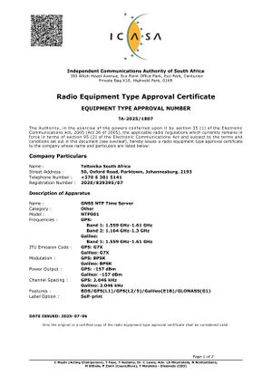 NTP001 devices are type approved for South Africa: