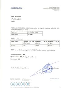 You can the find PDF version of the Declaration of OTD500 MTBF declaration here.