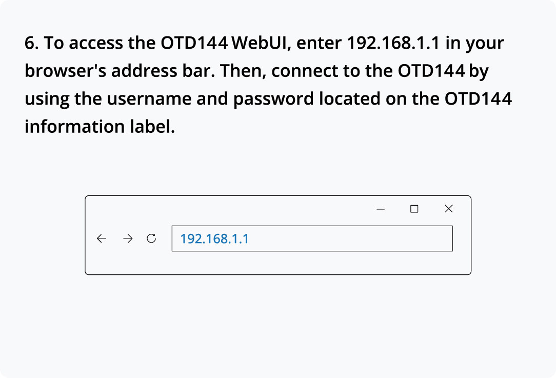 This Wiki page contains the online version of the Quick Start Guide (QSG) for the OTD144 Outdoor Router. Here you will find an overview of the various components on the front and back of a OTD144 device, hardware installation instructions, first login information, device specifications, and general safety information. It is highly recommended to acquaint yourself with the Quick Start Guide before using the device. You can also locate a printed version of the Quick Start Guide in the packaging box of your device.