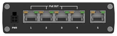 ** Default Teltonika provided power supply only allows 60 W PoE power budget at PSE, to reach maximum 120 W at PSE, a >130 W power supply must be used.