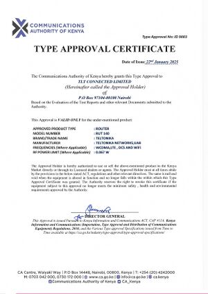 The Communications Authority of Kenya (CA) has within its remit the responsibility of type approving and accepting all telecommunications equipment intended to work within the public telecommunications networks in the country. CA is also responsible for type approving or accepting radio communication equipment intended for use in Kenya.