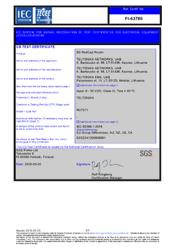 RUT271 was tested and certified in accordance with the IEC 62368-1:2018 Safety standard with EU group differences