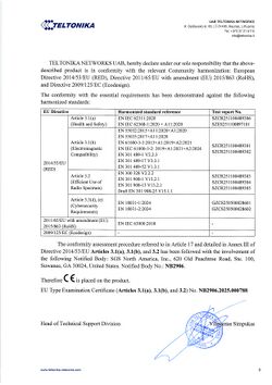 | EN 300 328 V2.2.2 EN 301 908-1 V15.2.1 EN 301 908-13 V13.2.1 Draft EN 301 908-25 V15.1.1 |