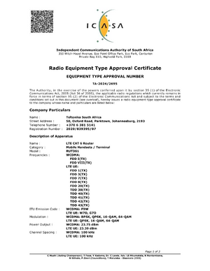 Radio frequency transmitter and receiver products that make use of the radio spectrum or connect to the public network and are intended to be marketed in South Africa are subject to mandatory ICASA type approval certification, unless specifically exempt by the Regulatory Authority.