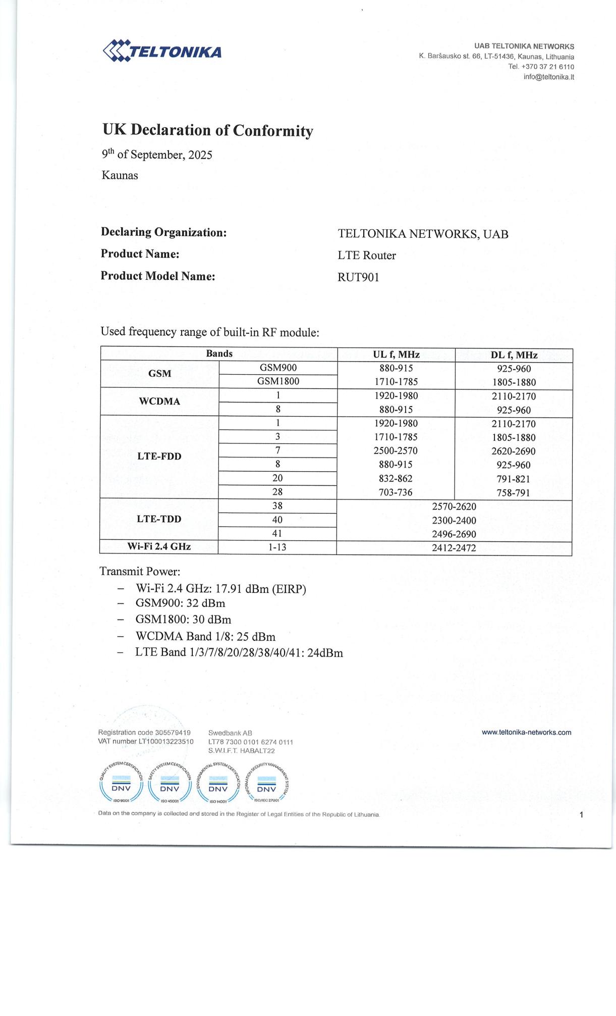 | EN 55032:2015+A11:2020+A1:2020 EN 55035:2017 + A11:2020 EN IEC 61000-3-2:2019 + A1:2021 EN 61000-3-3:2013 + A1:2019+A2:2021 EN 301 489-1 V2.2.3 EN 301 489-17 V3.2.4 EN 301 489-52 V1.2.1 |