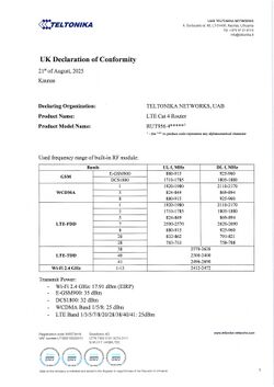 | EN 55032:2015 + A1:2020 EN 55035:2017 + A11:2020 EN IEC 61000-3-2:2019 + A1:2021 EN 61000-3-3:2013 + A1:2019 EN 301 489-1 V2.2.3 EN 301 489-17 V3.2.4 EN 301 489-19 V2.1.1 EN 301 489-52 V1.2.1 |