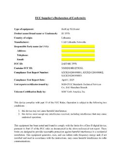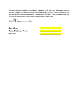 Only Importer or Marketer, local US entity, can sign Supplier's Declaration of Conformity, therefore please find SDoC below and sign by your own entity's name.