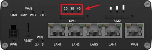 The mobile network type LEDs are located near the SIM card slot.