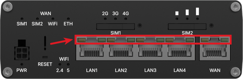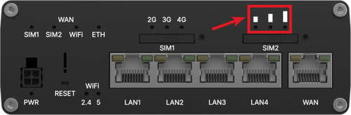 The mobile signal strength indication LEDs are located near the SIM card slot.