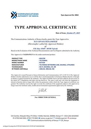 The Communications Authority of Kenya (CA) has within its remit the responsibility of type approving and accepting all telecommunications equipment intended to work within the public telecommunications networks in the country. CA is also responsible for type approving or accepting radio communication equipment intended for use in Kenya.