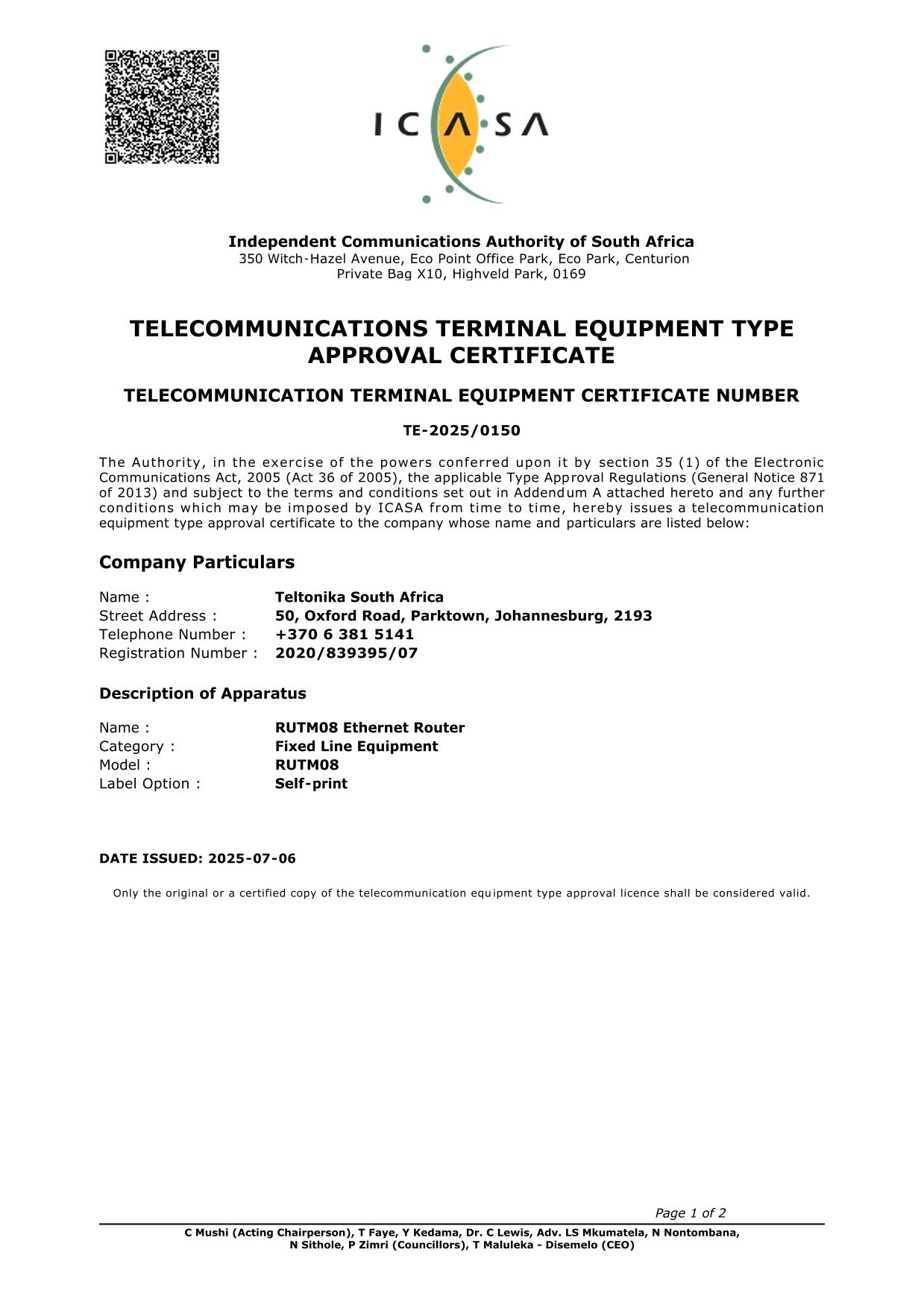 Radio frequency transmitter and receiver products that make use of the radio spectrum or connect to the public network and are intended to be marketed in South Africa are subject to mandatory ICASA type approval certification, unless specifically exempt by the Regulatory Authority.