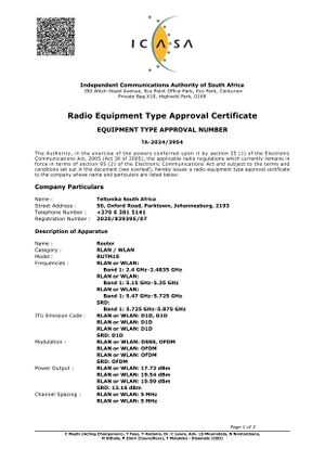Radio frequency transmitter and receiver products that make use of the radio spectrum or connect to the public network and are intended to be marketed in South Africa are subject to mandatory ICASA type approval certification, unless specifically exempt by the Regulatory Authority.