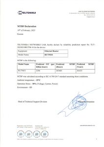 You can the find PDF version of the Declaration of RUTM10 MTBF declaration here.