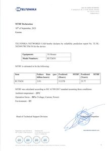 You can the find PDF version of the Declaration of RUTM30 MTBF declaration here.