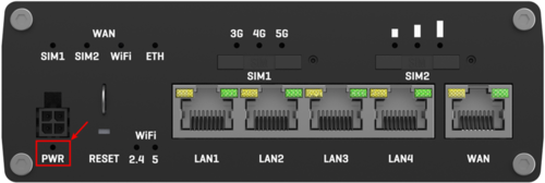 The Mobile signal strength LEDs can also be used as a time indicator for holding the reset button. When you press and hold the reset button, if there is a User's default configuration configured on the device, you have to hold it pressed for 6 seconds (by default) to initiate a User's default configuration reset and 12 seconds (by default) to initiate a Factory reset. Otherwise, it is only necessary to hold the reset button for 6 seconds to trigger a Factory reset. If the button was held down longer than 20 seconds (by default) no action will be taken.