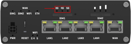 The mobile network type LEDs are located near the SIM card slot.