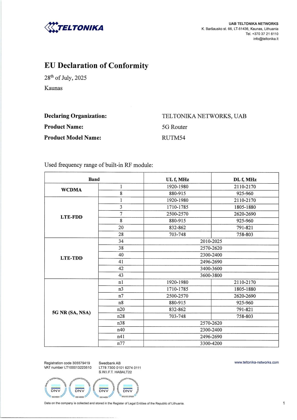 | EN 55032:2015 + A11:2020 + A1:2020 EN 55035:2017 + A11:2020 EN IEC 61000-3-2:2019 + A1:2021 EN 61000-3-3:2013 + A1:2019 + A2:2021 EN 301 489-1 V2.2.3 EN 301 489-3 V2.3.2 EN 301 489-17 V3.3.1 EN 301 489-19 V2.2.1 EN 301 489-52 V1.2.1 |