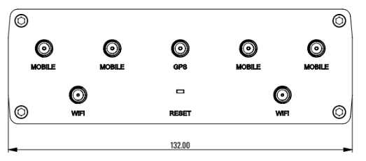 The figure below depicts the measurements of RUTM55 and its components on the back panel: