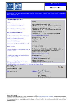 RUTM56 was tested and certified in accordance with the IEC 62368-1:2018 Safety standard with EU group differences