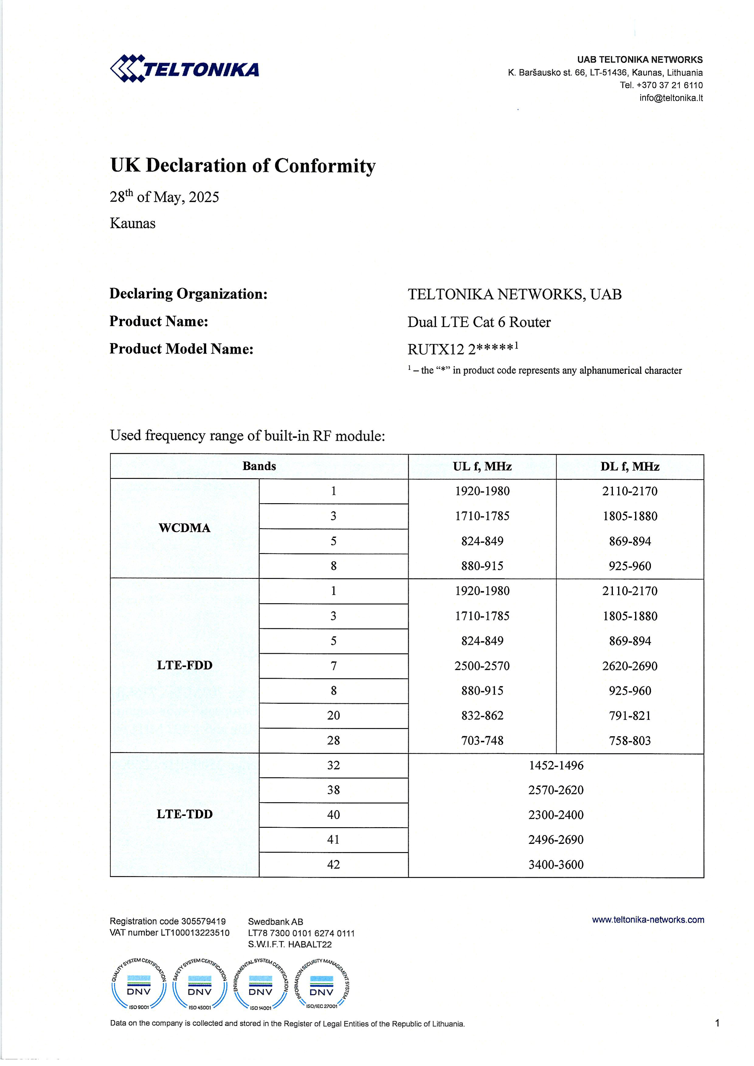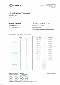 | EN 55032:2015 + A11:2020 + A1:2020 EN 55035:2017 + A11:2020 EN IEC 61000-3-2:2019 + A1:2021 + A2:2024 EN 61000-3-3:2013 + A1:2019 + A2:2021 EN 301 489-1 V2.2.3 EN 301 489-3 V2.3.2 EN 301 489-17 V3.3.1 EN 301 489-19 V2.2.1 EN 301 489-52 V1.2.1 |