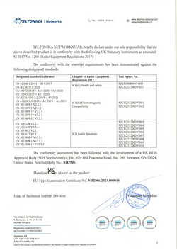 | EN 300 328 V2.2.2 EN 300 440 V2.2.1 EN 301 893 V2.1.1 EN 303 413 V1.2.1 EN 301 908-1 V15.2.1 EN 301 908-2 V13.1.1 EN 301 908-13 V13.2.1 |