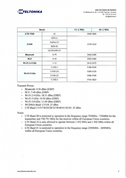 | EN 300 328 V2.2.2 EN 303 413 V1.2.1 EN 301 893 V2.1.1 EN 300 440 V2.2.1 EN 301 908-1 V15.2.1 EN 301 908-2 V13.1.1 EN 301 908-13 V13.2.1 |