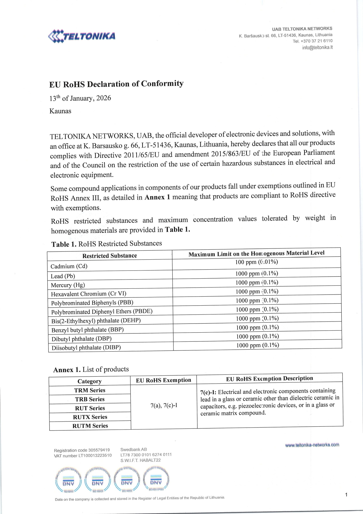 - 12:42, 14 January 2026 Aurelija.P talk contribs created page File:EU RoHS Declaration of Conformity.pdf