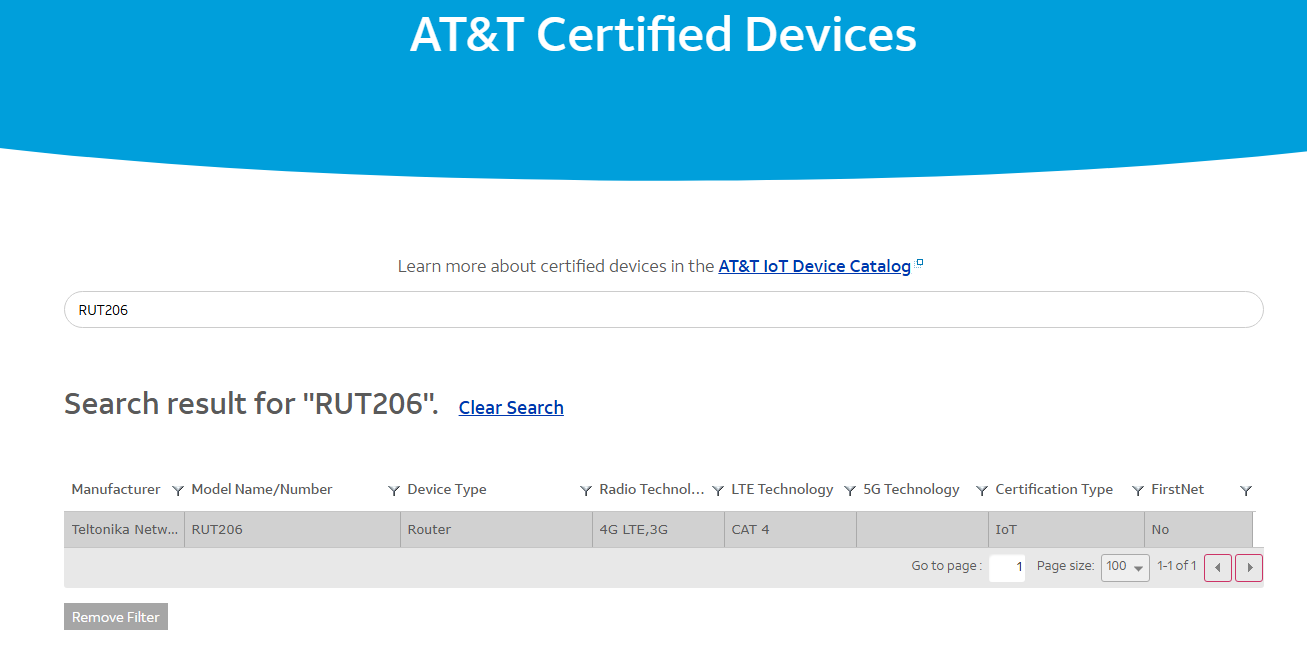 - 08:43, 24 October 2025 Domjan talk contribs created page RUT206 AT&T (Created page with "{{at&t description}} ==RUT206 *2*****<sup>1</sup>== Devices under the product codes RUT206 *<b>2</b>****<sup>1</sup> are certified for use in the AT&T network and can be found on the AT&T website among certified devices: ===Attachments=== {|style="margin: 0 auto;valign="left"" | thumb|left|750px|link=Special:Redirect/file/RUT206_AT_T_Website.png|AT&T certified RUT206 *<b>2</b>****<sup>1</sup> |} ---- <small><sup>1</sup> – the “*...")