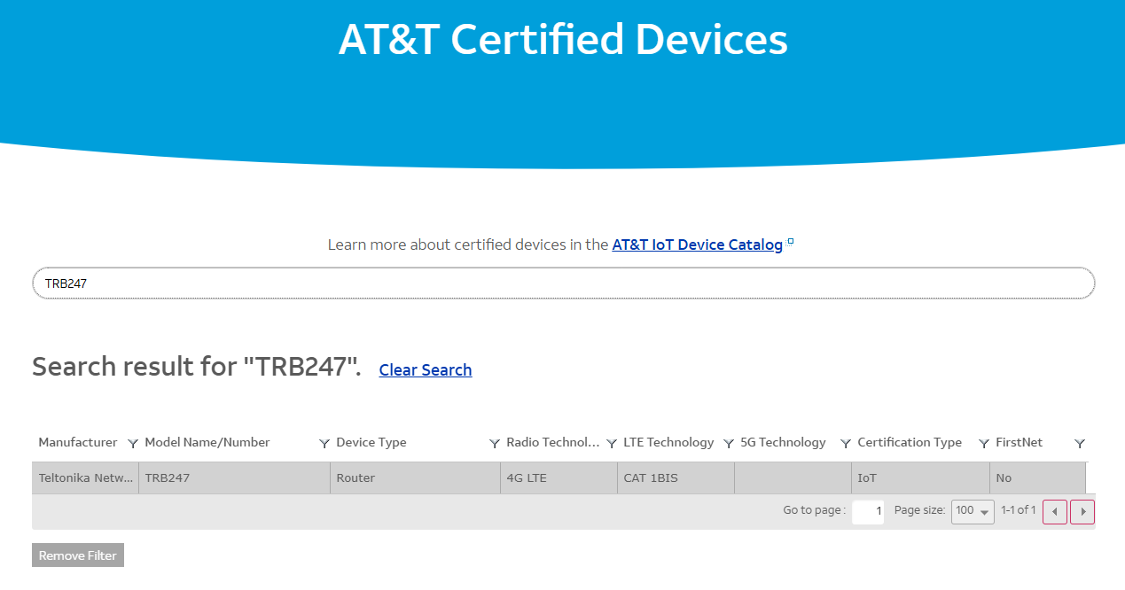 - 14:53, 14 November 2025 Kornelija.kumpyte talk contribs created page TRB247 AT&T (Created page with "{{at&t description}} ==TRB247 0******<sup>1</sup>== Devices under the product codes TRB247 <b>0</b>*****<sup>1</sup> are certified for use in the AT&T network and can be found on the AT&T website among certified devices: ===Attachments=== {|style="margin: 0 auto;valign="left"" | left|thumb|750x750px|AT&T certified TRB247 <b>0</b>*****<sup>1</sup> |} ---- <small><sup>1</sup> – the “*” in product code represents any alphanumerical cha...") Tag: Visual edit: Switched