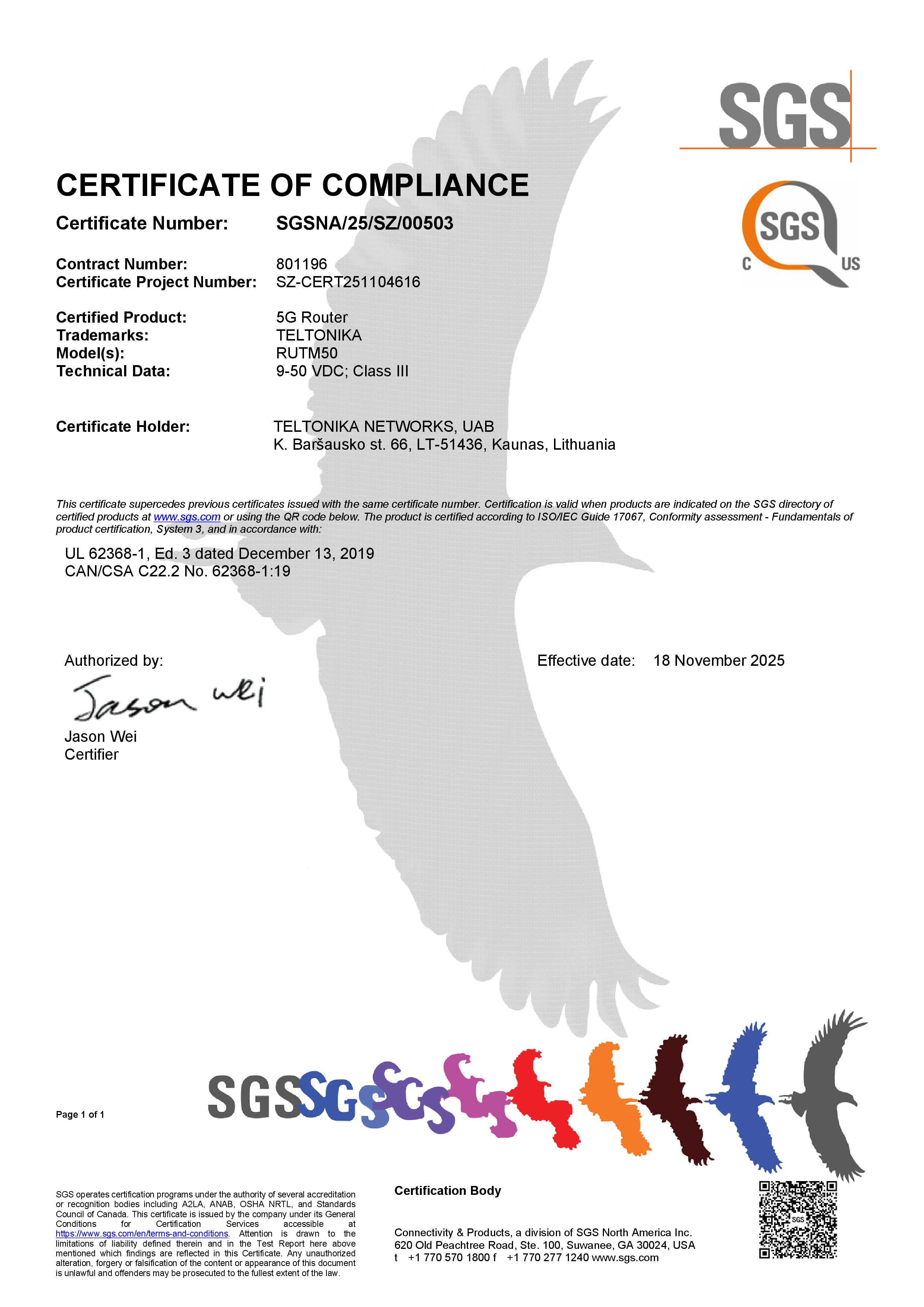 - 11:57, 21 November 2025 Lukas.Pipiras talk contribs set the upload from Fri, 21 Nov 2025 09:57:42 GMT as the approved revision for "File:RUTM50 UL CSA Safety Certificate V2.pdf"